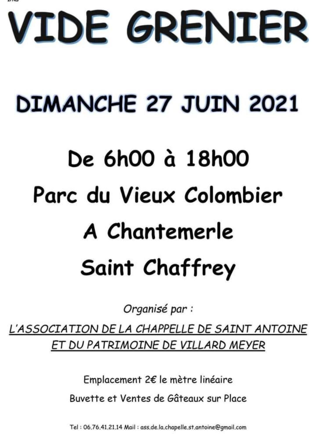 c'est cela que vous propose le 27 juin 2021 de 6h00 à 18h00, l'’association de la chapelle de Saint Antoine et du patrimoine de Villard Meyer au parc du Vieux Colombier à Chantemerle. Présidente de l'association, Marie-Claude Pascual répond aux questions de Laura Giraud.