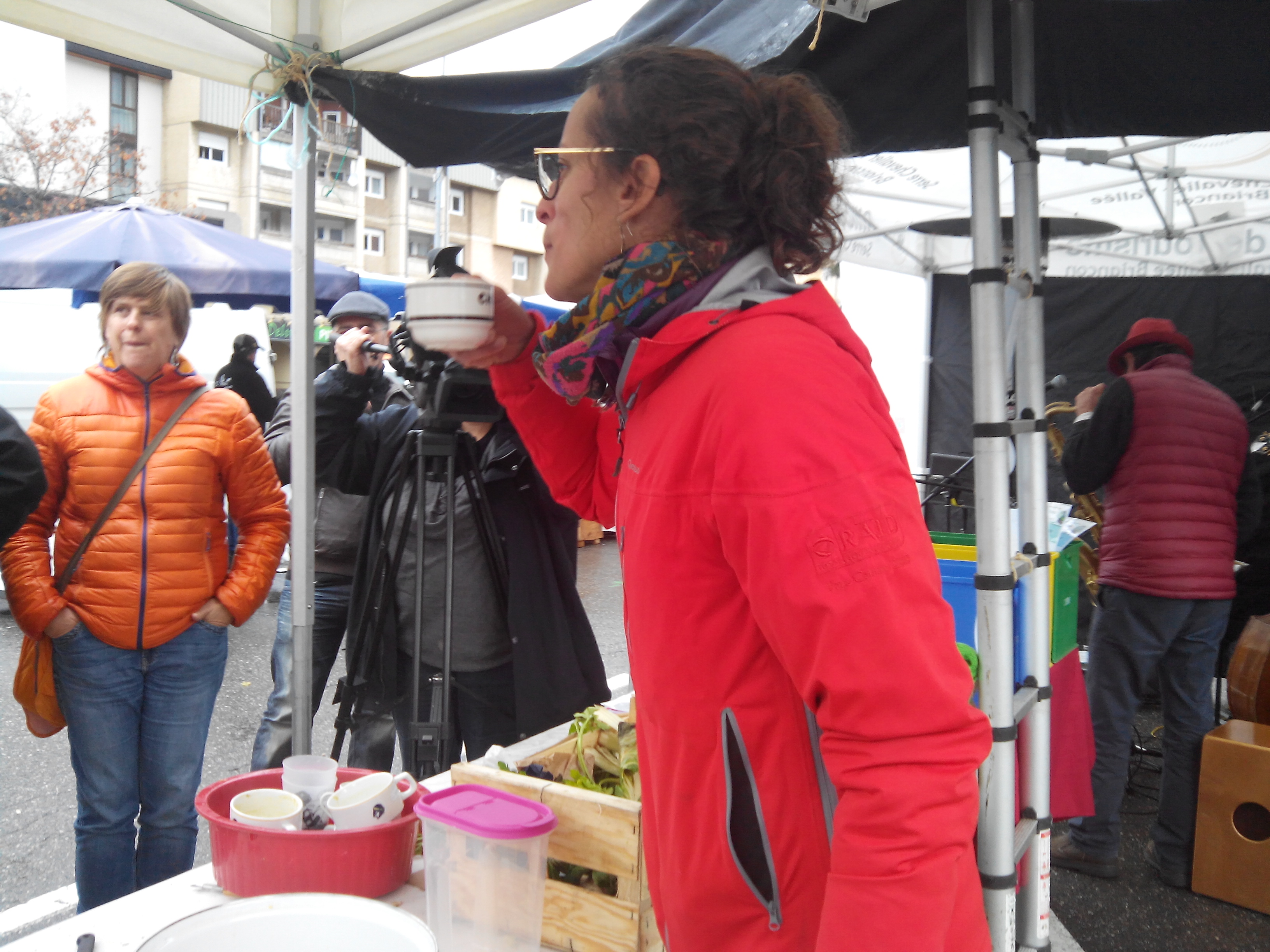 Opération de sensibilisation au gaspillage alimentaire et dans le cadre de la semaine européenne de la réduction des déchets, une disco soupe originale a animé le marché de Briançon. La Communauté de Communes du Briançonnais s'est mobilisée en partenariat avec l’ADEME pendant une semaine pour proposer sensibilisation et informations à destination de différents publics. Pour clôturer ce programme, la Disco Soupe, ouverte à tous avait lieu et en musique ce mercredi 23 novembre. Les Briançonnais pouvaient suivre et participer à la confection d’une soupe géante dans une ambiance festive sur le stand de la régie, pour ensuite la déguster tous ensemble à la fin du marché.