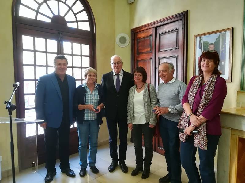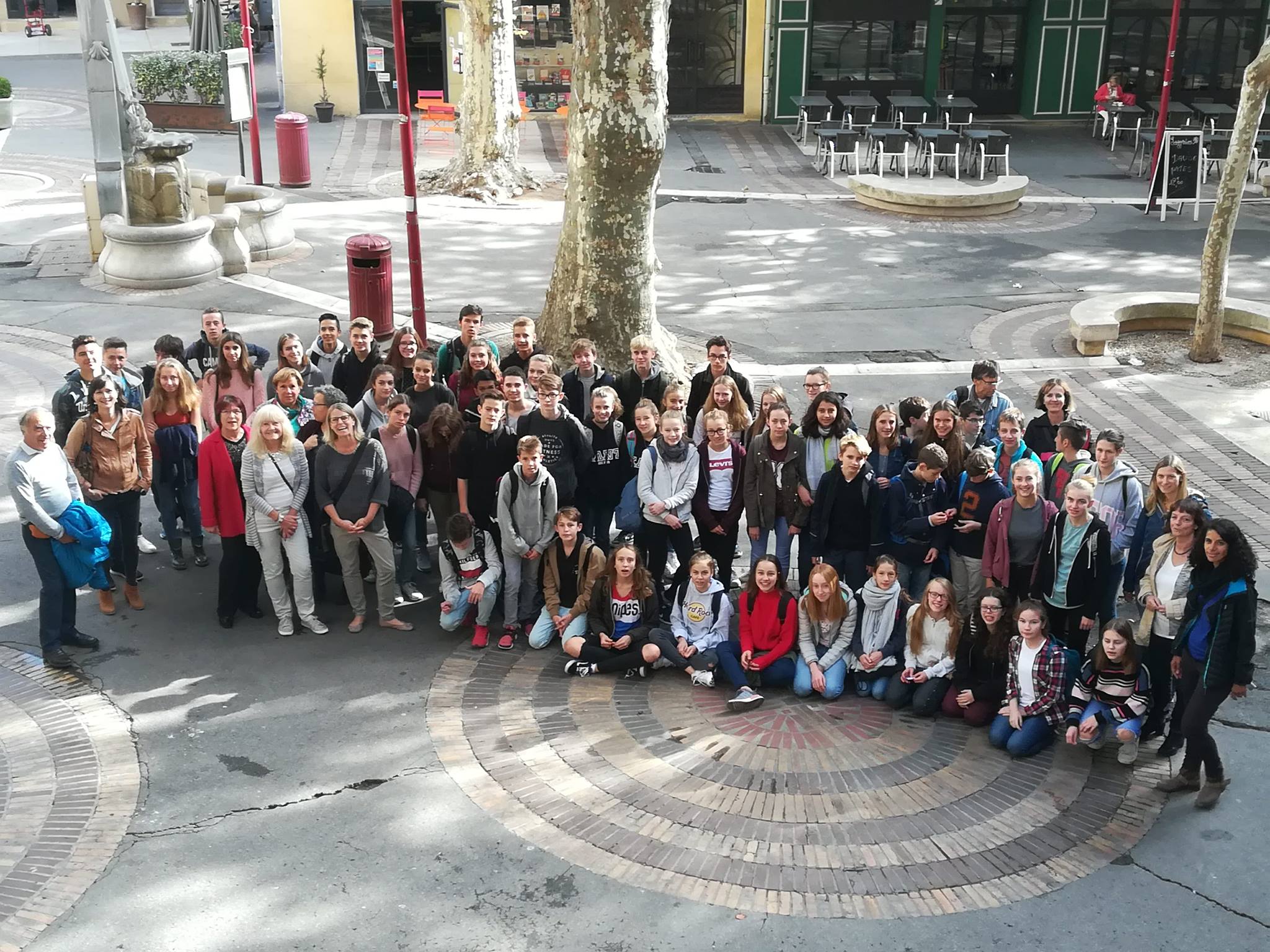 Dans le cadre des échanges scolaires franco-allemands, une cinquantaine de collégiens et lycéens allemands étaient présents à Manosque. Le comité de jumelage et la ville de Manosque ont voulu célébrer cette grande amitié avec Leinfelden-Echterdingen. Les discours se sont succédé, tous admiratifs face au travail accompli depuis ces 46 dernières années. Les raisons ne sont plus les mêmes, il y a quasiment 50 ans c’était dans un esprit de réconciliation entre la France et l’Allemagne, aujourd’hui la paix et le partage sont au cœur de cet échange. Toute cette dynamique a été possible grâce à Karine Dees professeur allemande et ses collègues français Joël et Michelle Avril. Cette cérémonie a été l’occasion de leur remettre la médaille de la ville de Manosque pour l’investissement et le travail accompli en présence du maire Bernard Jeanmet-Peralta.
