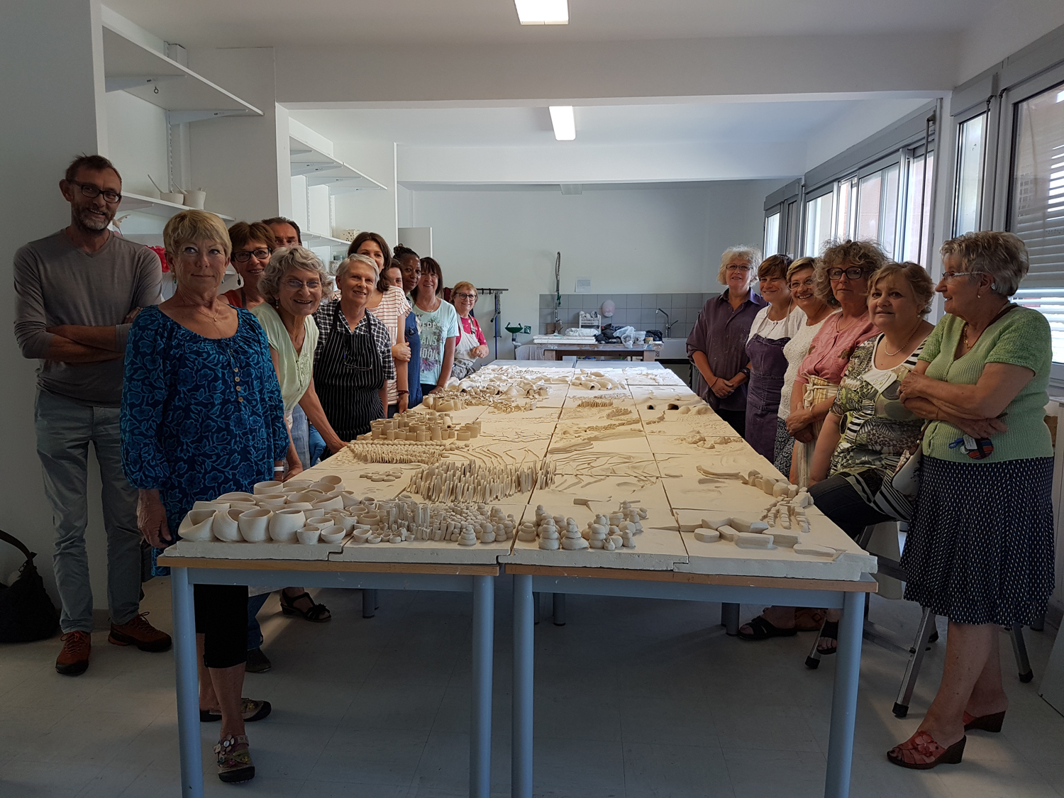 Un projet d’amélioration du centre ancien de Digne-les-Bains et de redynamisation des espaces collectifs se met en place progressivement. L’association A cœur de Digne, l’école d’art IDBL et la Ville ont présenté une œuvre en terre cuite de 800 kilos, un volume mural qui sera installée fin juin place juiverie. Mobiliser les citoyens pour qu’ils se réapproprient leur cité et notamment le centre ancien, et qu’ils participent à l’amélioration de leur cadre de vie c’est l’objectif du projet initié par Jean-François Quiesse qui préside l’association A cœur de Digne. L’ensemble des projets s’est concentré sur la place juiverie, une des parties les plus anciennes de la ville. Une dynamique partenariale encouragée par la direction de l’école d’art IDBL. Notez que sa journée portes ouvertes aura lieu samedi 23 juin avec le vernissage à 18 h. Dans ce reportage d’Odile Frison, je vous propose d’écouter Martine Bonnet adjointe à la démocratie participative et à la communication ; elle est très heureuse de ce formidable engouement collectif et de son résultat artistique, puis nous entendrons Maggy Cluzeau professeur de céramique et enfin le témoignage de Bernadette et Annie, deux élèves ayant participé à la création de la céramique. Martine Bonnet.