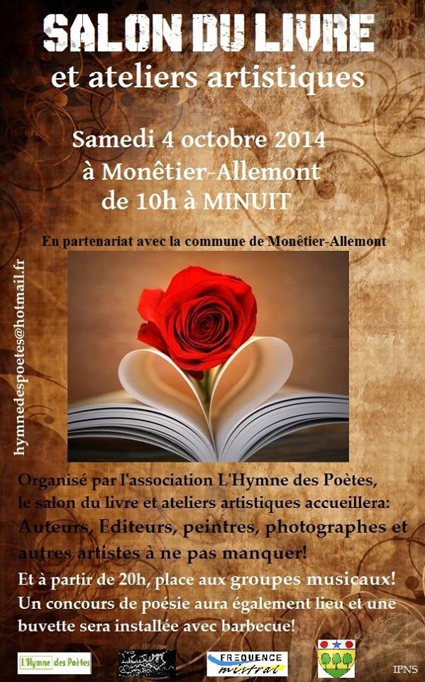 « L’hymne des poètes » est une jeune association née du désir de partager des textes via les réseaux sociaux et plus concrètement finaliser ces écrits par une maison d’édition proposant ainsi une distribution par le circuit classique. Elle propose une manifestation livresque… Ce salon du livre aura lieu samedi 4 octobre à Monêtier- Allemont, dans les Hautes-Alpes, se veut fédérateur en rassemblant des participants novices, mais aussi confirmés dans le domaine de l’écriture. Cette journée débordera franchement jusque tard dans la nuit, c’est une occasion de se rencontrer, de débattre sur cette thématique au sens local, comme au sens plus large. Auteurs, peintres, ou photographes se croiseront au gré de ce premier salon qui affichera également divers ateliers artistiques. Je vous propose d’écouter un des membres et fondateur de cette dynamique association, Anthony Damaschi, il explique le déroulement de cette journée, au micro de notre ami Vince.