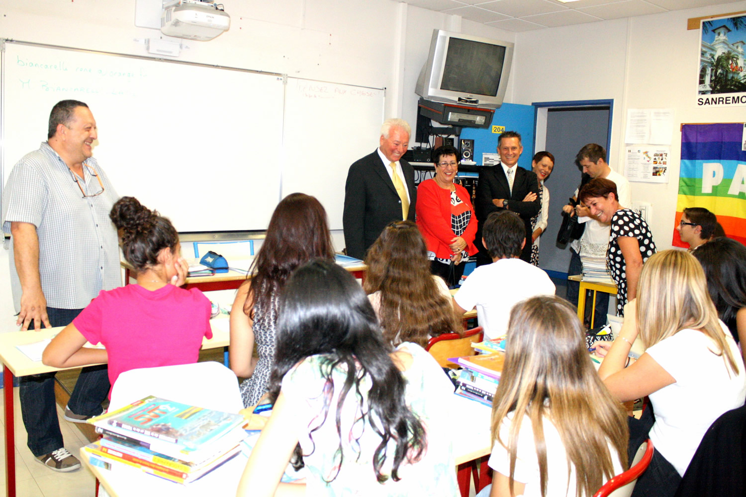 Comme chaque année la cité Paul Arène accueille les représentants des institutions à l’occasion de la rentrée des classes. Hier le directeur des services académiques des Alpes de Haute-Provence, Éric Lavis et son adjointe Ariane Meyer, Éliane Barreille, vice-présidente du Conseil régional et le maire de Sisteron Daniel Spagnou étaient accueillis par la proviseure Valérie Aucomte, et ses adjointes Janine Diot pour le lycée et Sandrine Bessueille au collège. Une visite fructueuse qui est passée entre autre dans les classes spécialisées dans les langues vivantes, Italien et Allemand. Ils ont pu aussi entendre les doléances des professeurs du collège vis-à-vis de la réforme 2016. Puis direction le chantier du nouveau lycée hôtelier dont la première pierre sera posée dans quelques jours. Un édifice flambant neuf, financé par la Région, comprenant également des aménagements à l’internat et autres rénovations pour un coût global de 16 M€ a rappelé Éliane Barreille.