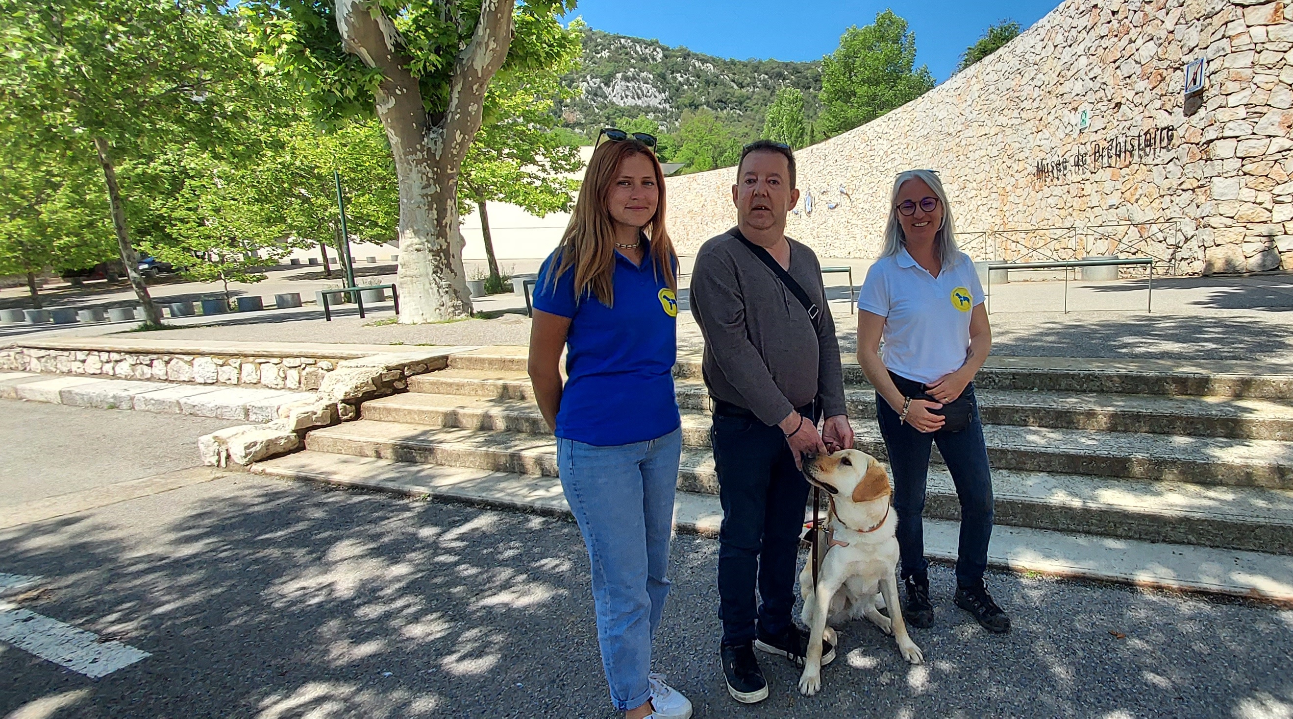 La mairie de Quinson organisait ce mercredi 24 mai la cérémonie officielle de remise de Sirus, chien-guide pour déficient visuel, à Sylvain Campana. Ce labrador d’un an et demi, qui vient de terminer sa formation, est le 3ème chien, après Alpha, puis Idem, qui désormais accompagnera Sylvain dans son quotidien.