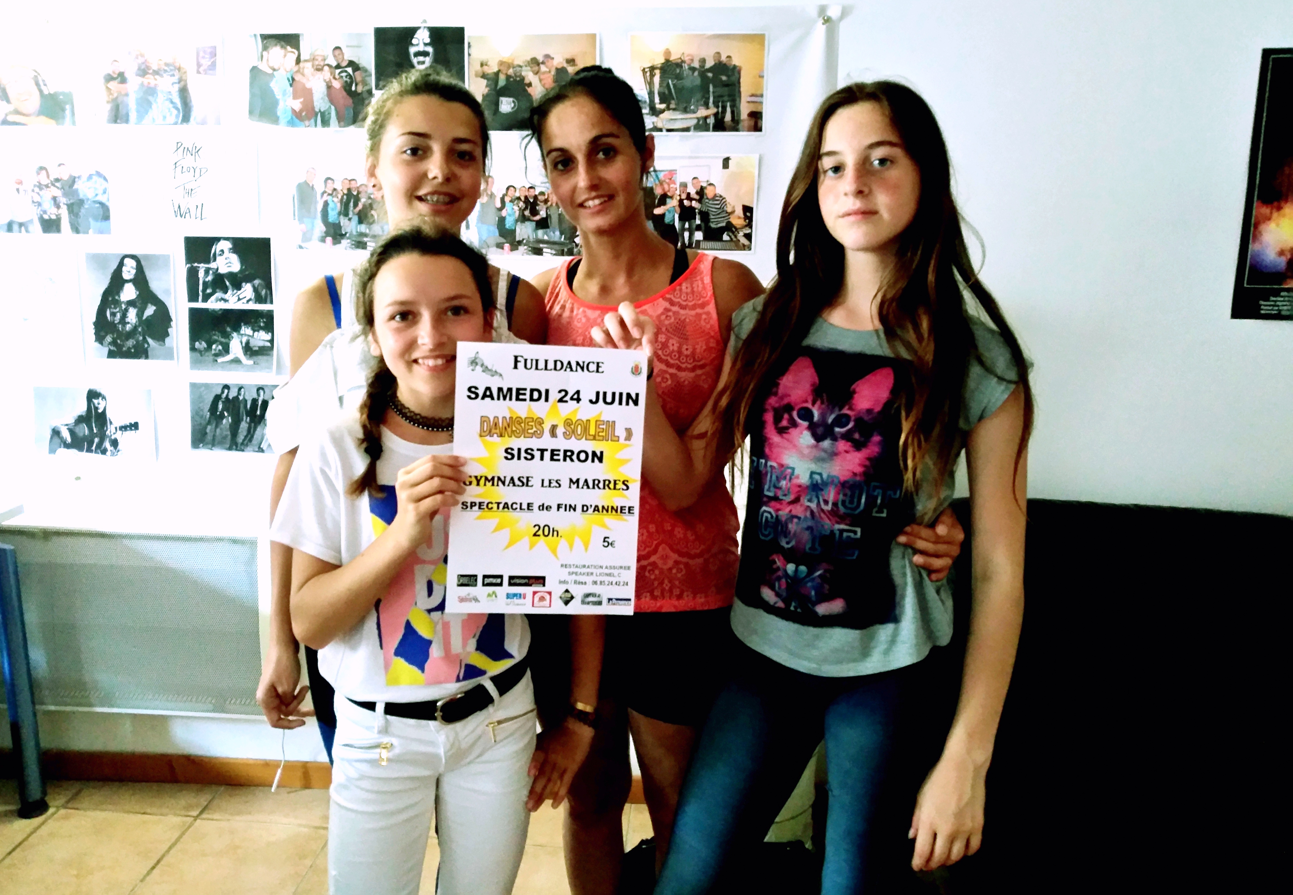 Créée en 2013 à Sisteron, l’association FullDance regroupe des danseuses à partir de 4 ans et jusqu’à l’âge adulte. Parents, grands-parents, frères, sœurs et amis, tous se délectent à chaque représentation des chorégraphies, ajustées à la perfection, et le succès est logiquement au rendez-vous ! L’été approchant, l’heure est venue de retrouver le Fulldance pour son dernier spectacle de l’année. Une soirée magnifique en perspective le samedi 24 juin à partir de 20h au gymnase des Marres de Sisteron, ouverture des portes à 19h avec la possibilité de se restaurer sur place. Au programme, une multitude de chorégraphies spéciales « danses du soleil » avec de la zumba, de la salsa, de la danse orientale mais aussi africaine, ambiance méditerranéenne attendue ! Le tout animé dans la bonne humeur par le speaker Lionel. Tarif d’entrée 5€, réservations au 06 85 24 42 24.