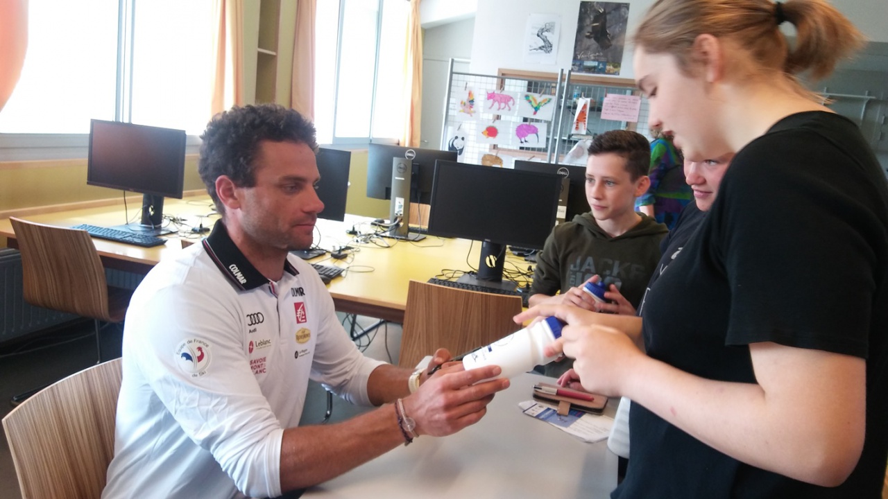 En attendant, le skieur ubayen s’est volontiers prêté au jeu des selfies et dédicaces tout en suivant des démonstrations de VTT, step et gym, handball et badminton, un moment où les élues du Département Mmes Raponi et Morinaud raquettes en main ont échangé quelques volants dans le gymnase du collège André Ailhaud.