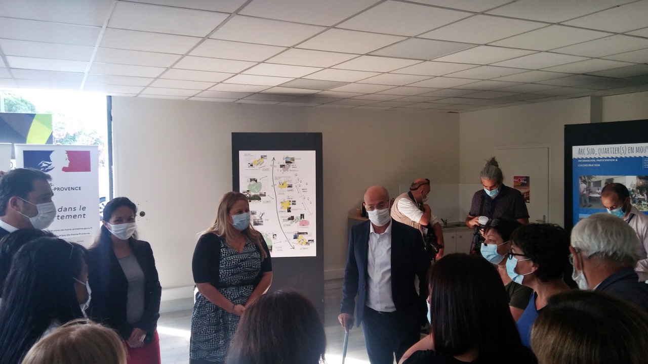 Inaugurant la maison du projet en compagnie des partenaires de l’action, Nadia Hai ministre chargée de la ville a salué la dynamique notamment de l’agglomération, Action Logement, le bailleur social HHP, Famille & Provence, Oxance pour le centre de santé, les petits débrouillards et bien sûr le conseil citoyen qui a été et reste associé au déroulement du projet. Croisant des habitants du quartier inquiets sur les sommes envisagées pour dédommagement, la ministre qui a grandi dans un quartier populaire en région parisienne s’est voulue rassurante, vous l’entendrez dans un instant.